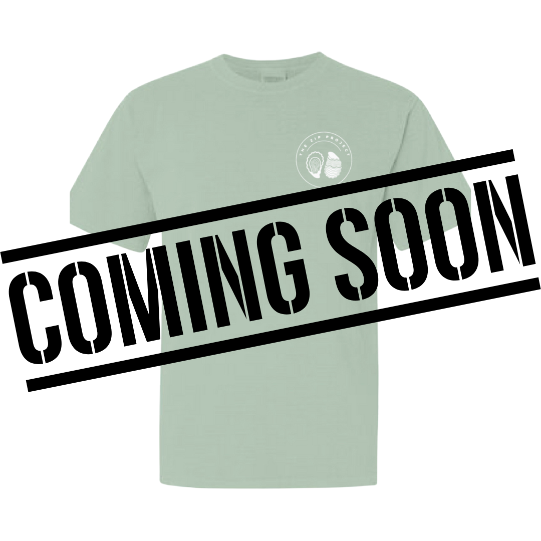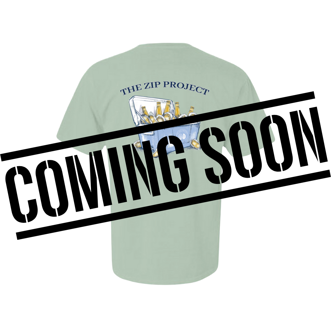BEER AND OYSTERS Short-Sleeve T-Shirt -- Featuring the sleek Zip Project logo on the front in white, and a vibrant and fun illustration of cooler overflowing with beer and fresh oysters on ice on the back. Perfect for seafood and oyster lovers who want to show off their coastal vibe in style!